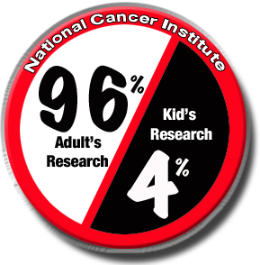 There are plenty of things that make all of us angry and very non-passive when it comes to childhood cancer. NCI only spending 4% of it’s research budget on childhood cancer is one that makes me angry. Every time I bring up the subject with people involved with cancer, there is always someone who wants to explain how the National Cancer Institute apportions it’s money. They want to justify it by using charts, graphs, news articles and such to show the reason behind it. My response is always the same. In my best, raised “grandfather’s voice”, I say, “I DON’T GIVE A DAMN!” I could care less how they figure it! You must admit, 96% for adults is just WRONG! Children command a much bigger slice of my life than a measly 4%. I believe that anyone who has or ever had children would want to make sacrifices for them, especially when it comes to research.