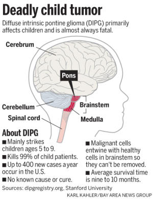 vary depending on tumor type, location, and grade. While there has been progress in survival for Central Nervous System (CNS) tumors overall, there has been little progress for some subtypes, such as diffuse intrinsic pontine glioma (DIPG), for which the median survival time after diagnosis remains less than one year. Improvements in survival for many types of CNS malignancies have resulted from advances in neurosurgical techniques, delivery of radiation therapy, supportive care, and use of combination chemotherapy. Nevertheless, children treated for brain tumors have a high risk of long-term morbidity and mortality. Late neurologic complications observed in follow-up studies of 5-year survivors include new onset of seizures, weakness in the arms and legs, blindness, and hearing loss. Children who receive radiation therapy to the hypothalamic-pituitary axis often experience neuroendocrine effects, including growth hormone deficiency, hypothyroidism, and abnormal timing of menarche. Cranial radiation therapy, particularly when used in very young children, can also result in neurocognitive deficits. For this reason, treatment protocols for patients with CNS tumors have been modified so that children aged younger than 3 years usually receive chemotherapy first with delayed and/or reduced radiation. Radiation treatment is associated with an increased risk of subsequent neoplasms in survivors of CNS malignancies, including gliomas and meningiomas. Radiation is not always needed for low-grade tumors.