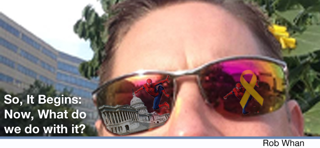 pressure. I can attest that sharing my son, Caleb’s story about a little boy who lived like spiderman, has made a difference in the way the people in these offices view childhood cancer. As encouraging as that may be, I can say that the federal government is not the answer to curing childhood cancer. These kids are fighting with a deficit that no other cancer group faces; industry. Adult cancers benefit from industry to the tune of 60% of their overall funding. Childhood cancer currently benefits near 0% from pharmaceutical and industry research investment. In order to overcome this discrepancy we need to get creative and enlist the leadership with experience to overcome this challenge. Most of us involved are parents who were brought into this word the day our child was diagnosed. Although we have the passion and the stories we still lack the leadership to overcome all the hurdles. It is my hope that the organizations in leadership will make the investment in a comprehensive strategy that addresses all aspects and challenges that our families face.