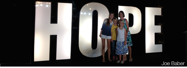 When the vigil ended, we sat on a park bench in front of the White House facing the park ConorBenchwhere all the parents had talked about their experiences. Conor looked up at me with his eyes full of innocence and said, “Grandpa Joe, what do you think about all of this?” Trying to not let my voice waiver, I said, “No one…no one person who was here tonight will ever forget this particular night for the rest of their lives.” I told Conor he was providing Hope for others whose children are diagnosed with cancer. He is a sign of Hope for others and in order for them to have courage to fight, they need Hope and he could provide that sign by just being himself. While rubbing the top of his head, I asked him, “What do you think about all of this?” He looked up and replied, “ I am so very, very lucky.” We hugged, I held him close so he could not see the tears in my eyes and at that moment all I could say was simply, “You’re right.”